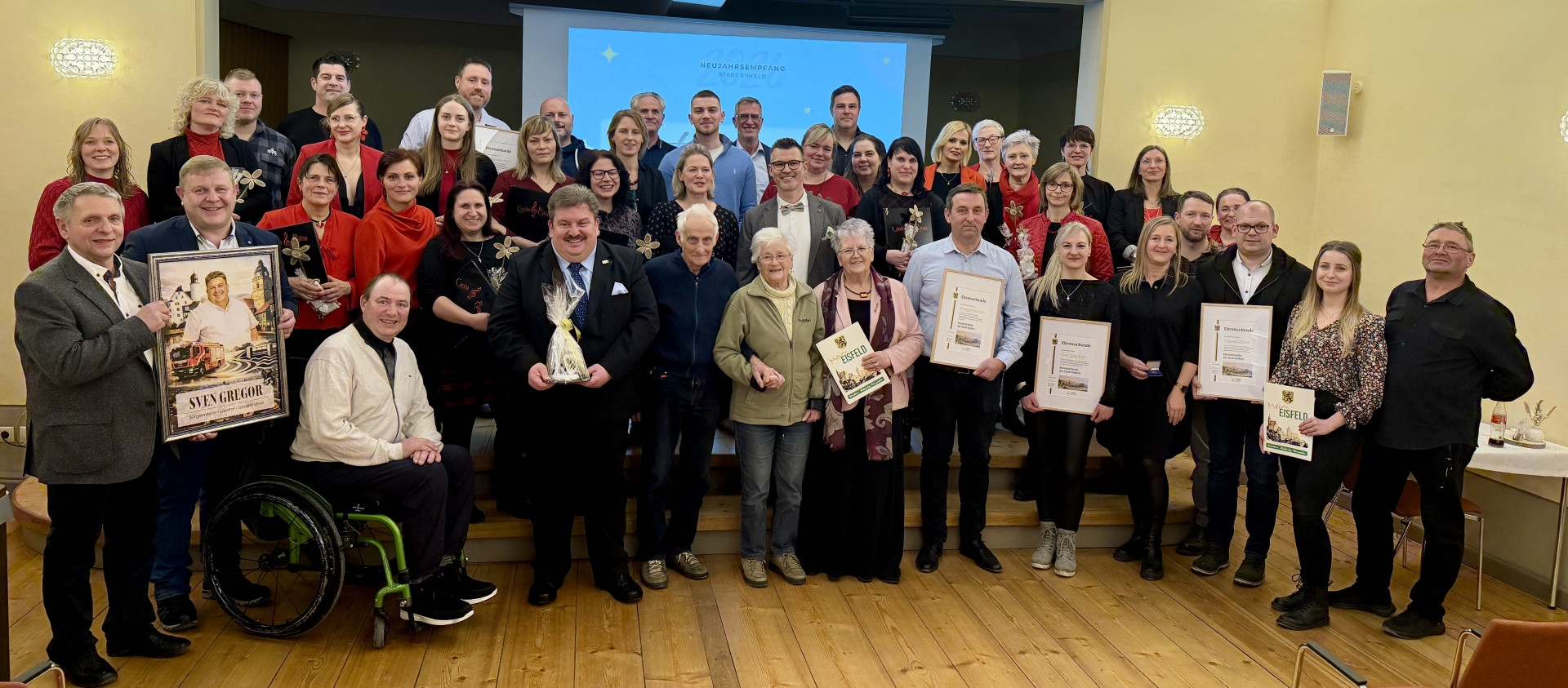 Mit einem festlichen Neujahrsempfang hat Eisfeld ein deutliches Zeichen für Zusammenhalt, Engagement und Zukunftsorientierung gesetzt. Zahlreiche Vertreter aus Ehrenamt, Vereinen, Wirtschaft, Politik und Gesellschaft folgten der Einladung in den Otto-Ludwig-Festsaal im Eisfelder Schloss. Der Abend stand im Zeichen des Dankes, der Gemeinschaft und des gemeinsamen Blicks nach vorn. Bürgermeister Christoph Bauer stellte die Veranstaltung unter das Jahresmotto „Fortschritt braucht Bewegung – gemeinsam“. Dieses Leitmotiv zog sich wie ein roter Faden durch Rückblick, Ausblick und die Ehrungen des Abends.