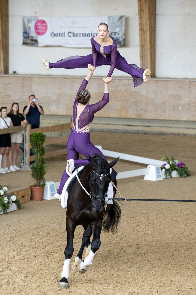 Insgesamt 13 Gruppen gingen auf der Olympia-Reitanlage in München an den Start, darunter zehn Mannschaften der Leistungsklasse M sowie drei aus der höheren Klasse S. Die Voltigiererinnen Elena Thauer, Mathilda Schramm, Anni Rödel, Rosa Bordin, Lenia Schramm und Emilia Weid präsentierten sich in allen drei Umläufen mit einem sauberen und ausdrucksstarken Programm. Mit viel Erfahrung und Feingefühl an der Longe bildete Bianca Weid gemeinsam mit Voltigierpferd Graf Tassilo, ein seit Jahren eingespieltes Team, die stabile Grundlage für die konstant starke Leistung der Gruppe.