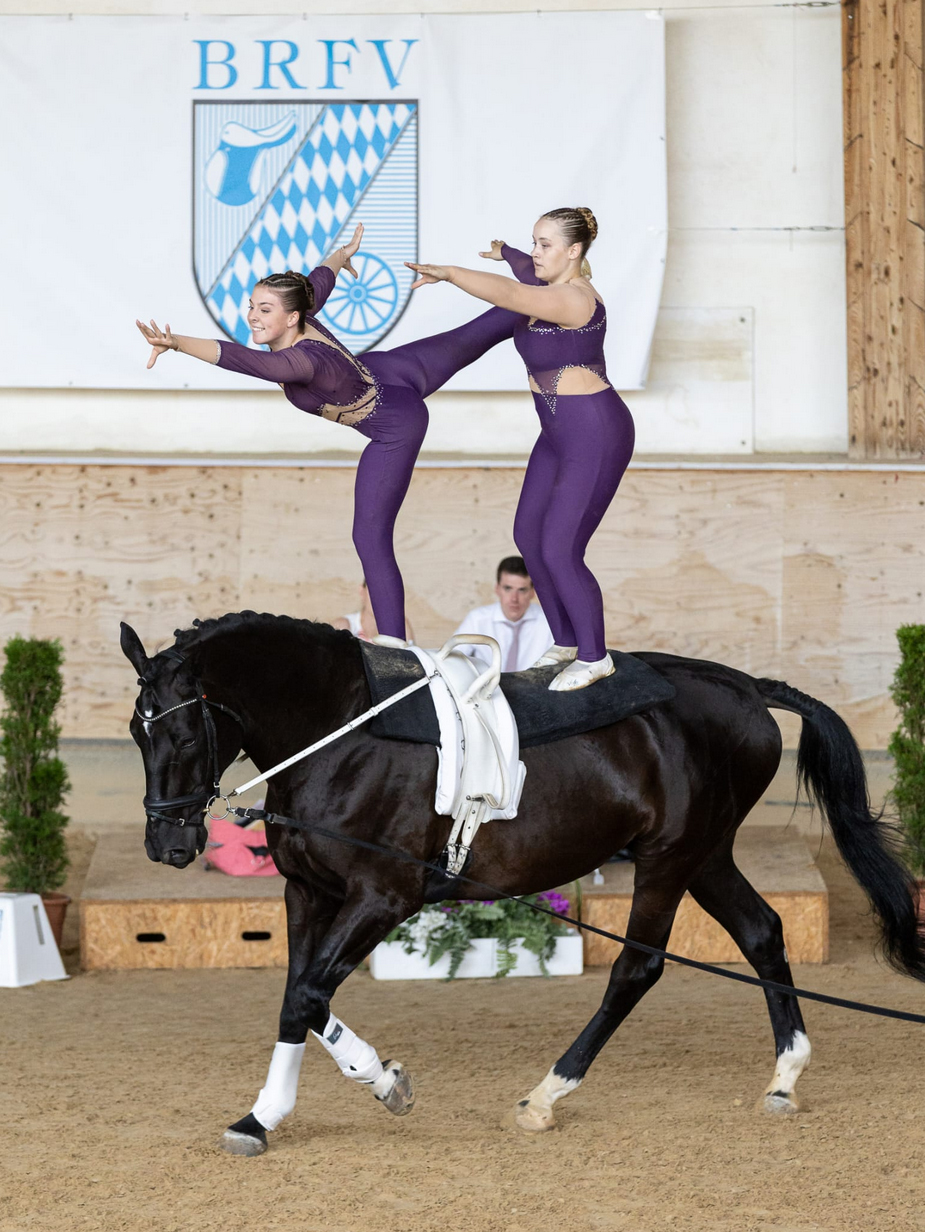 Insgesamt 13 Gruppen gingen auf der Olympia-Reitanlage in München an den Start, darunter zehn Mannschaften der Leistungsklasse M sowie drei aus der höheren Klasse S. Die Voltigiererinnen Elena Thauer, Mathilda Schramm, Anni Rödel, Rosa Bordin, Lenia Schramm und Emilia Weid präsentierten sich in allen drei Umläufen mit einem sauberen und ausdrucksstarken Programm. Mit viel Erfahrung und Feingefühl an der Longe bildete Bianca Weid gemeinsam mit Voltigierpferd Graf Tassilo, ein seit Jahren eingespieltes Team, die stabile Grundlage für die konstant starke Leistung der Gruppe.