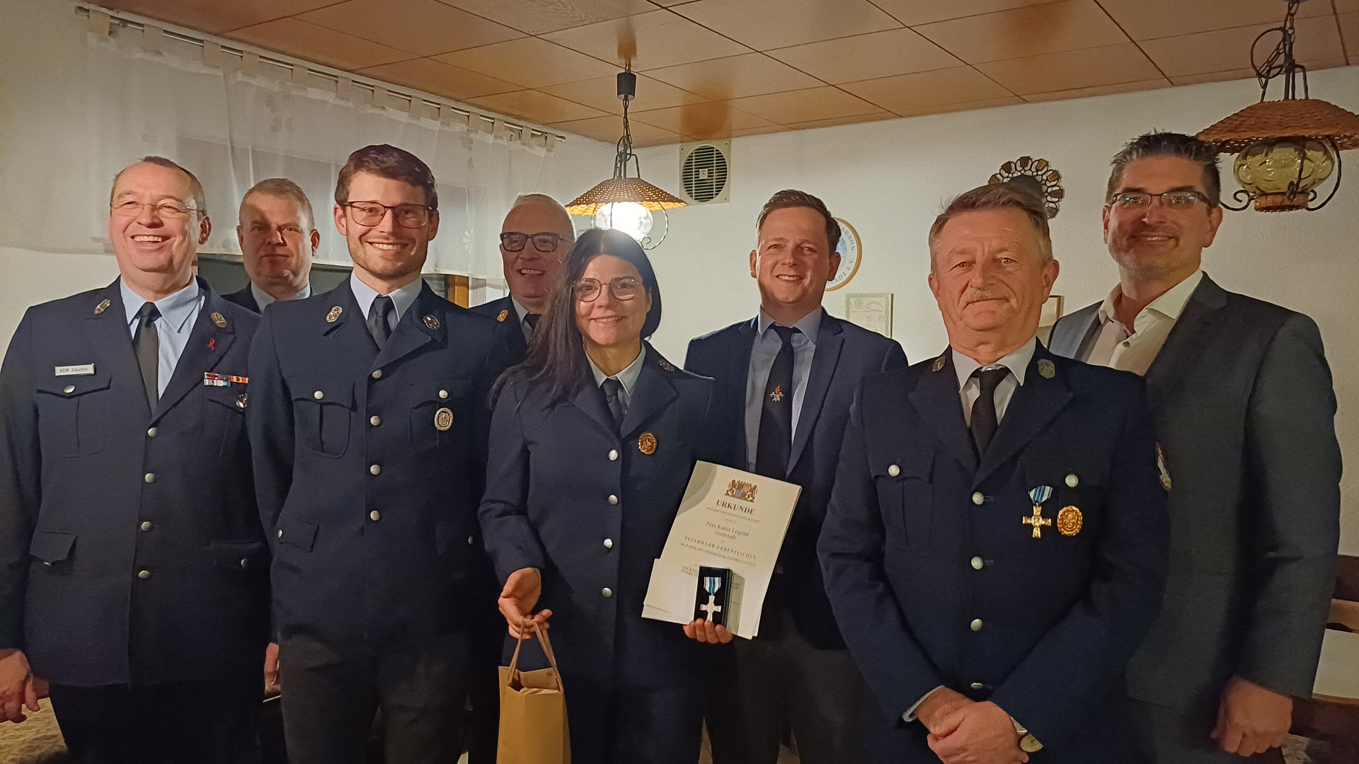 Ein Höhepunkt der Hauptversammlung der Feuerwehr Grattstadt war die staatliche Ehrung von Katrin Leipold für 25 Jahre aktiven Feuerwehrdienst. Die Auszeichnung erfolgte durch Stellvertretenden Landrat Christian Gunsenheimer und Kreisbrandrat Stefan Püls. Beide würdigten in ihren Grußworten das langjährige Engagement und die Einsatzbereitschaft im Dienst der Allgemeinheit.